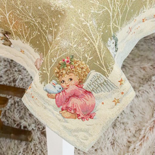 Angyalkákkal dekorált karácsonyi asztali futó, amely arany színű lurexxel van átszőve. Prémium minőségű termék, amely pompásan mutat az ünnepi asztalon. Megfelelő kezelés mellett hosszú éveking megőrzi szépségét és minőségét.