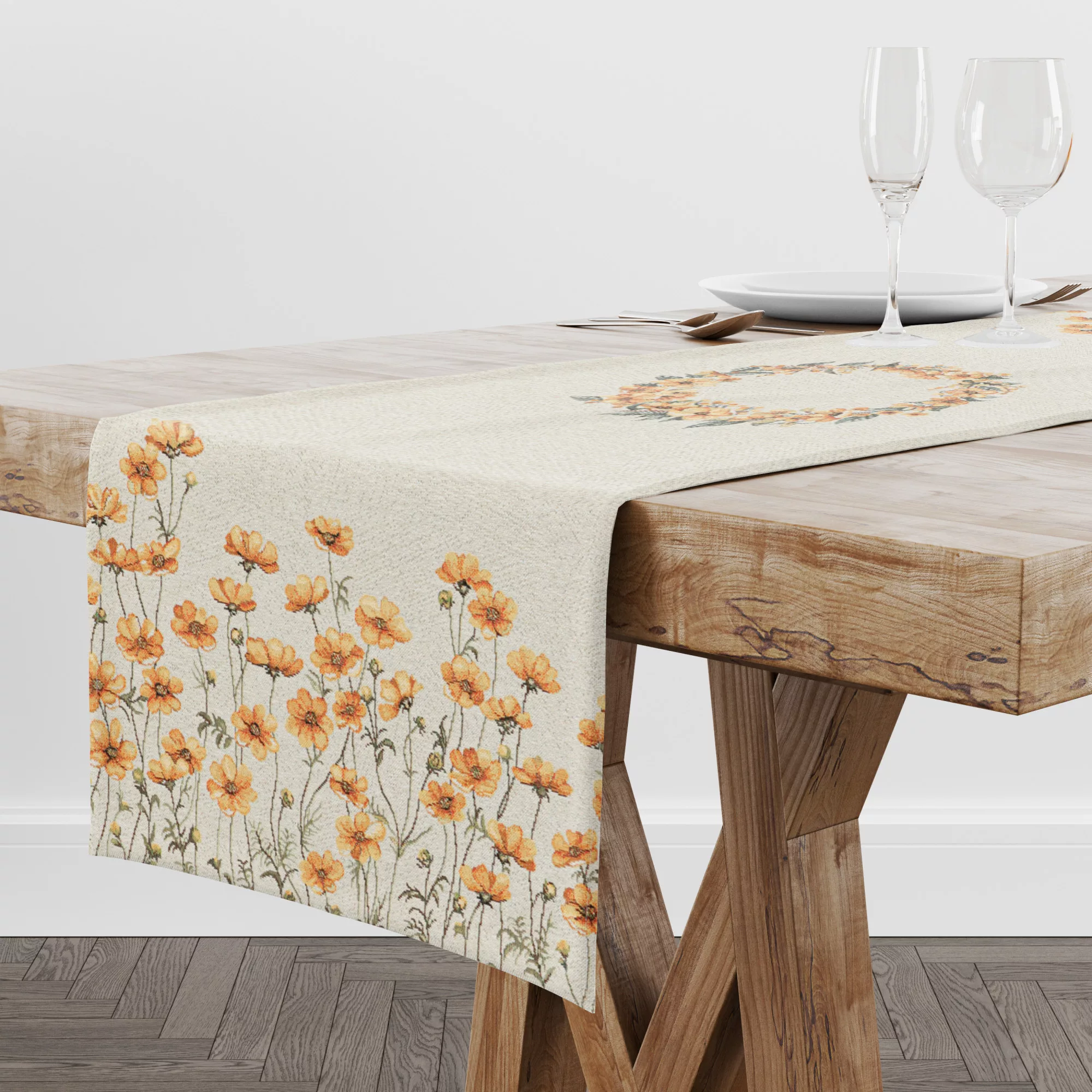 Apró, sárga virágos asztali futó 37x100 cm