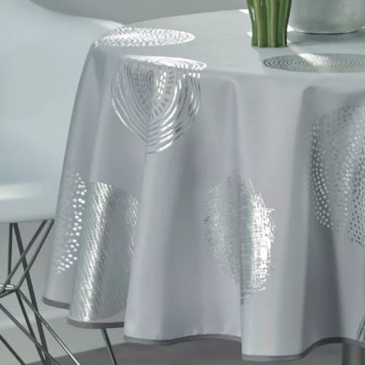 Argent szürke színű ezüst körös szennytaszító asztalterítő, kör alakú