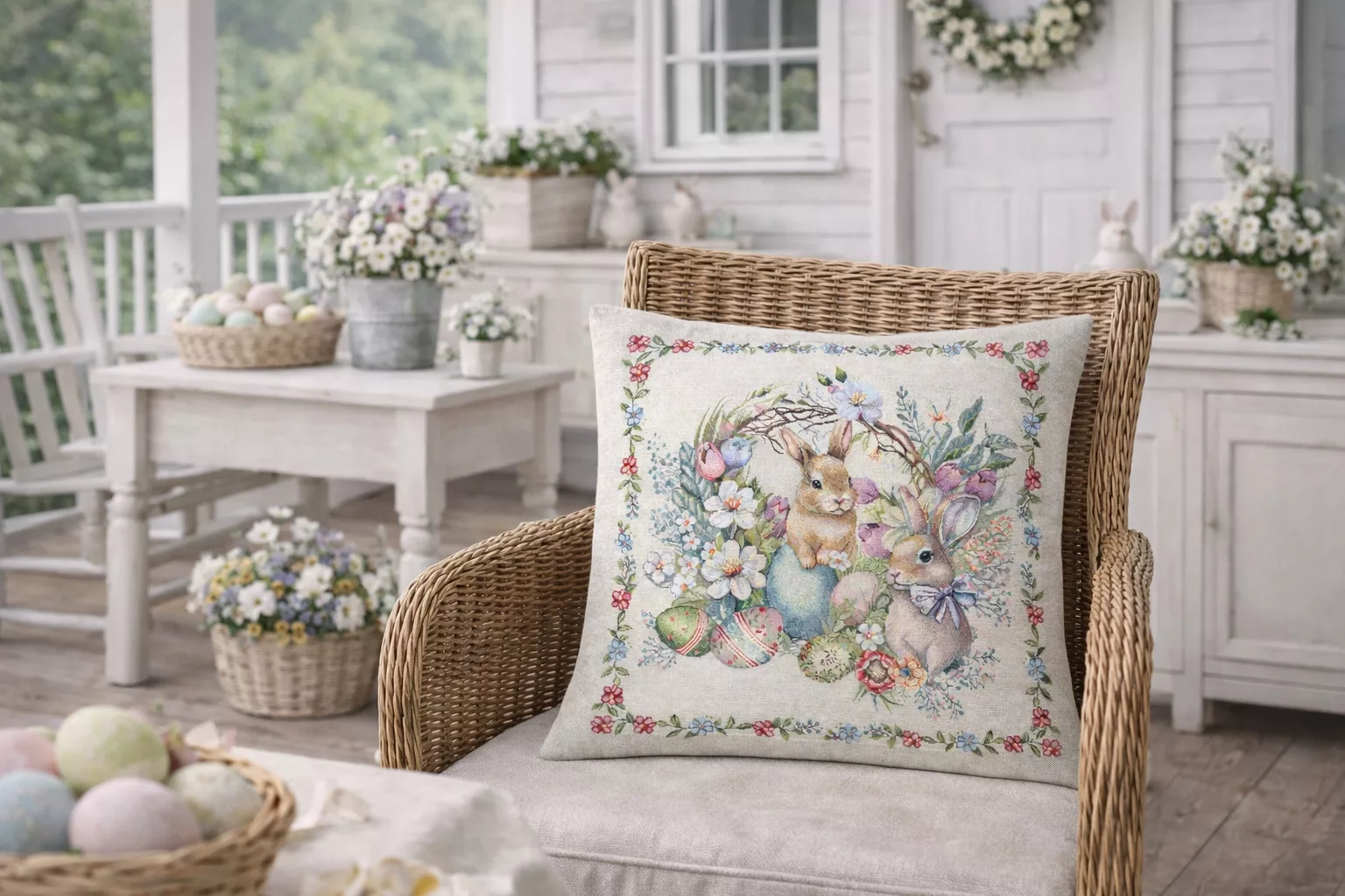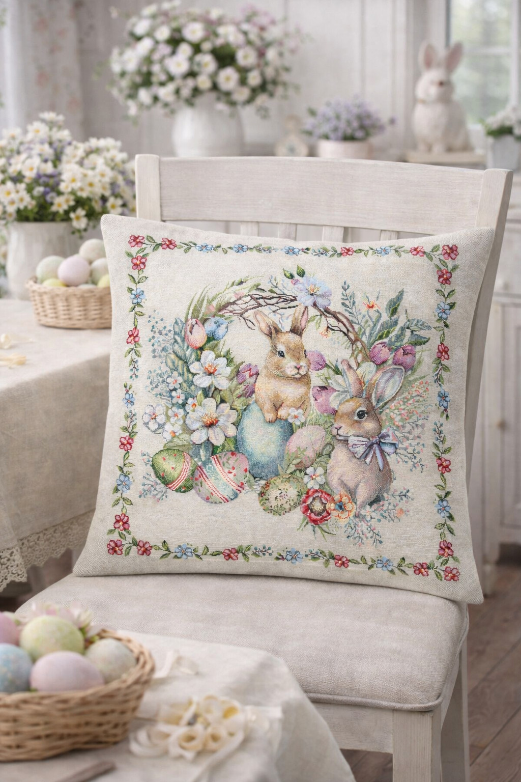 A pasztell színek és a mesés motívumok harmonikusan illeszkednek shabby chic, vintage, klasszikus vagy vidéki enteriőrökbe. Tökéletes választás húsvéti dekorációhoz, tavaszi lakásfrissítéshez vagy stílusos ajándékként.