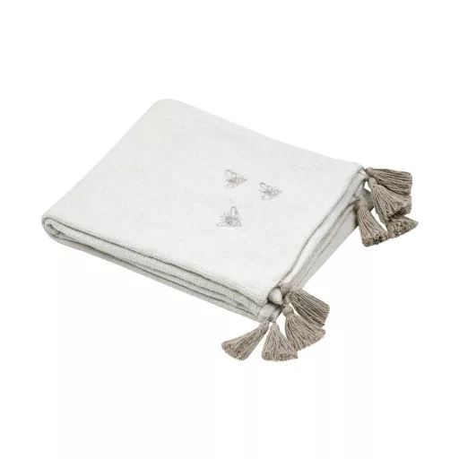 Varázsolj meghitt, időtlen hangulatot otthonodba ezzel a klasszikus pléddel! A világos, törtfehér alapot lágy méhecske hímzés díszíti, amely vintage megjelenést kölcsönöz.