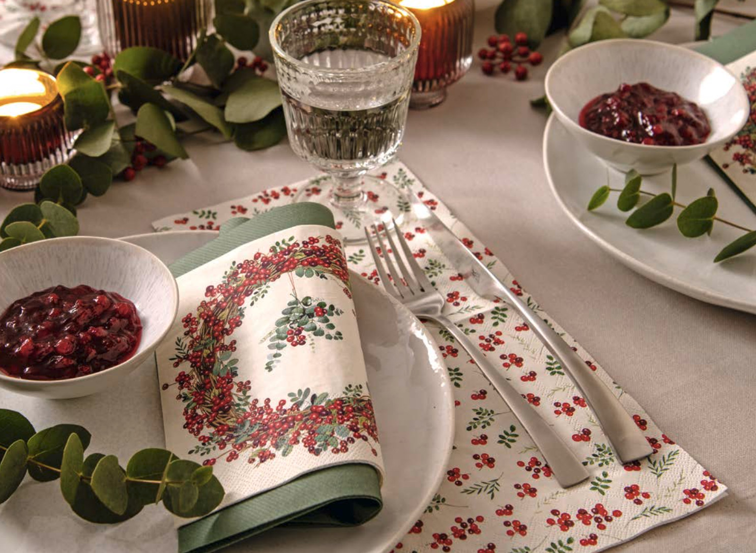 Berry wreath bogyós karácsonyi szalvéta (koktél), 3 rétegű, 20 db/csomag, IHR