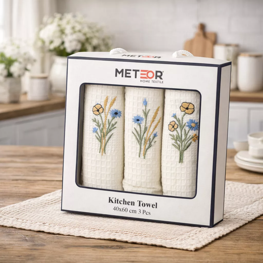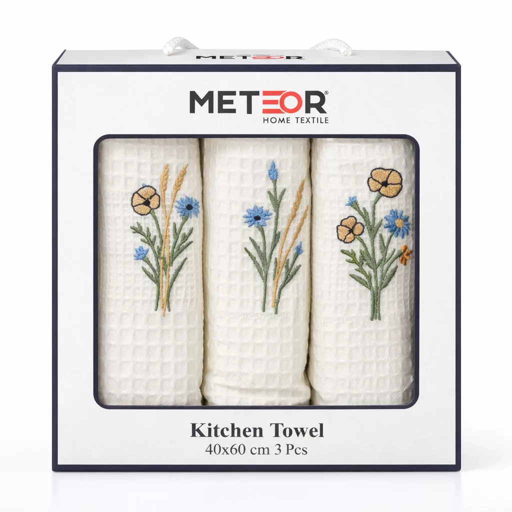 A díszdobozos szett 3 db egyforma méretű, gofri mintázatú, búzavirágokkal dekorált konyharuhát tartalmaz. Tökéletes ajándék lehet minden alkalomra. Hétköznapi használatra is megfelelő, jó nedvszívó képességekkel rendelkező termék.