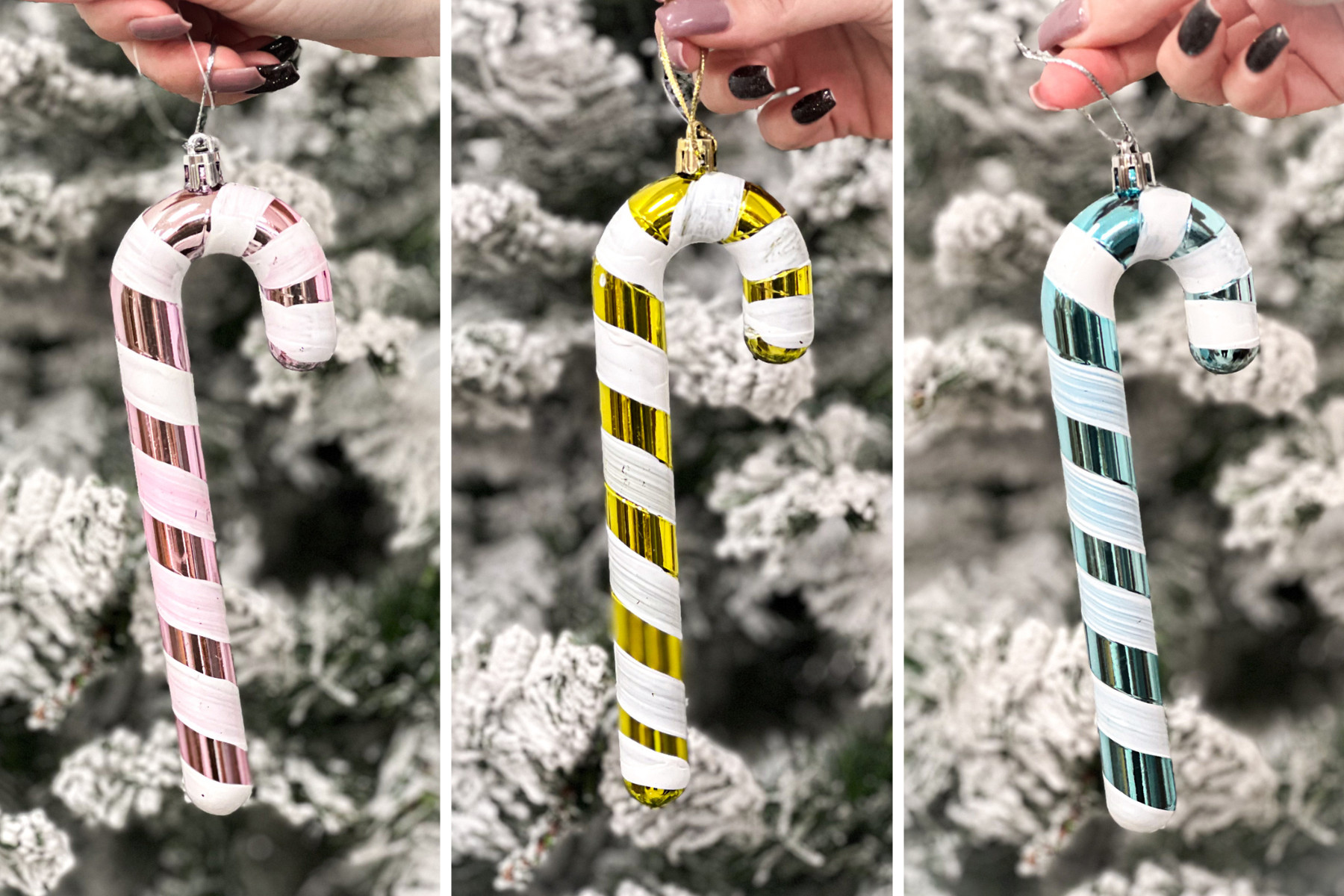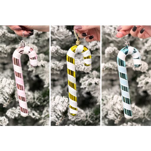 Cukor pálca karácsonyfa dísz, 3 db-os szett, metál színben