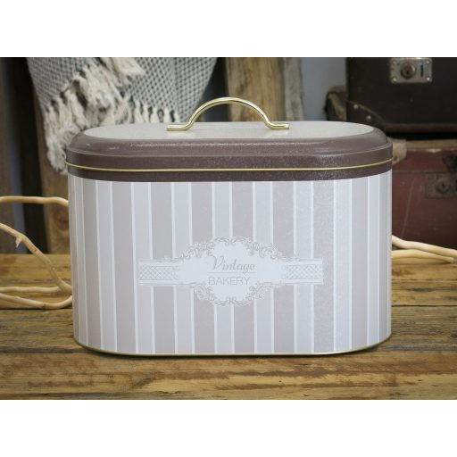 Dekoratív, vintage stílusú fedeles tároló. Külseje egyedi dizájnnal és különleges borítással rendelkezik, belseje arany színű. A konyhában igazán exkluzív kiegészítőként mutat