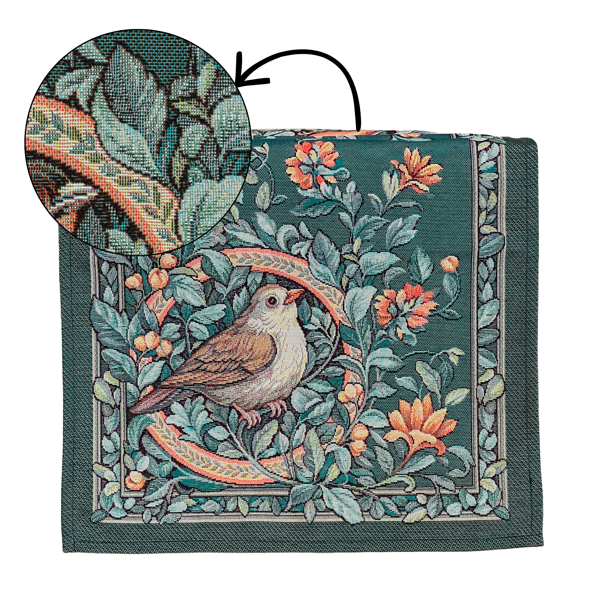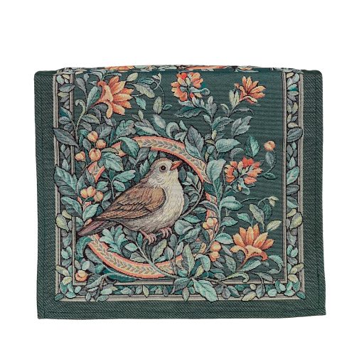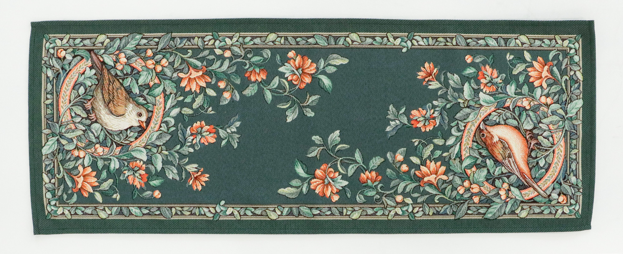 Gépi szövésű spanyol gobelin asztali futó – madaras, romantikus virágos design