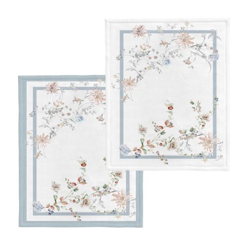 FLORES pasztell kék virág mintás, két részes konyharuha szett 50x70 cm