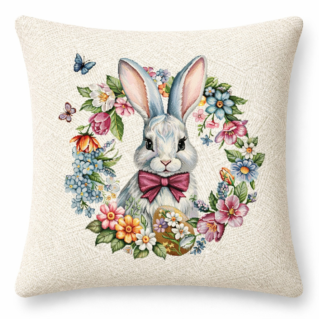Mindkét oldalon egy részletgazdag nyuszi mintha látható tavaszi virágokkal.