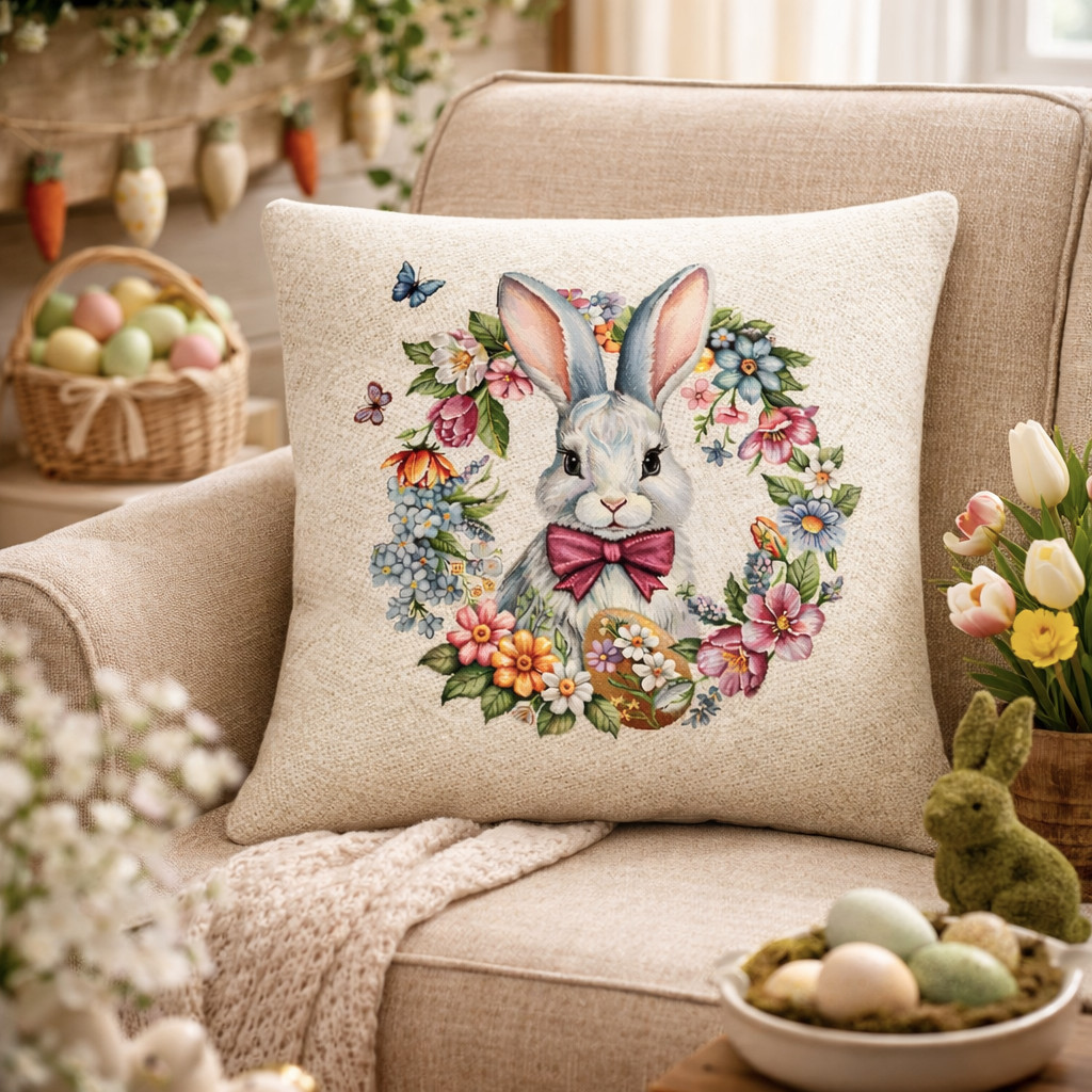 Gépi szövésű spanyol gobelin párnahuzat – nyuszi mintával