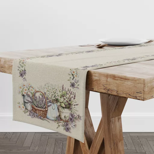 Dobd fel otthonod ezzel a csodálatos levendulás gépi gobelin asztali futóval, amely egy kis francia vidéki romantikát csempész az étkezőbe! A részletgazdag mintázat levendulacsokrokkal, virágokkal és vintage hangulatú kiegészítőkkel díszített, így tökéletes választás rusztikus vagy klasszikus stílusú enteriőrökbe.