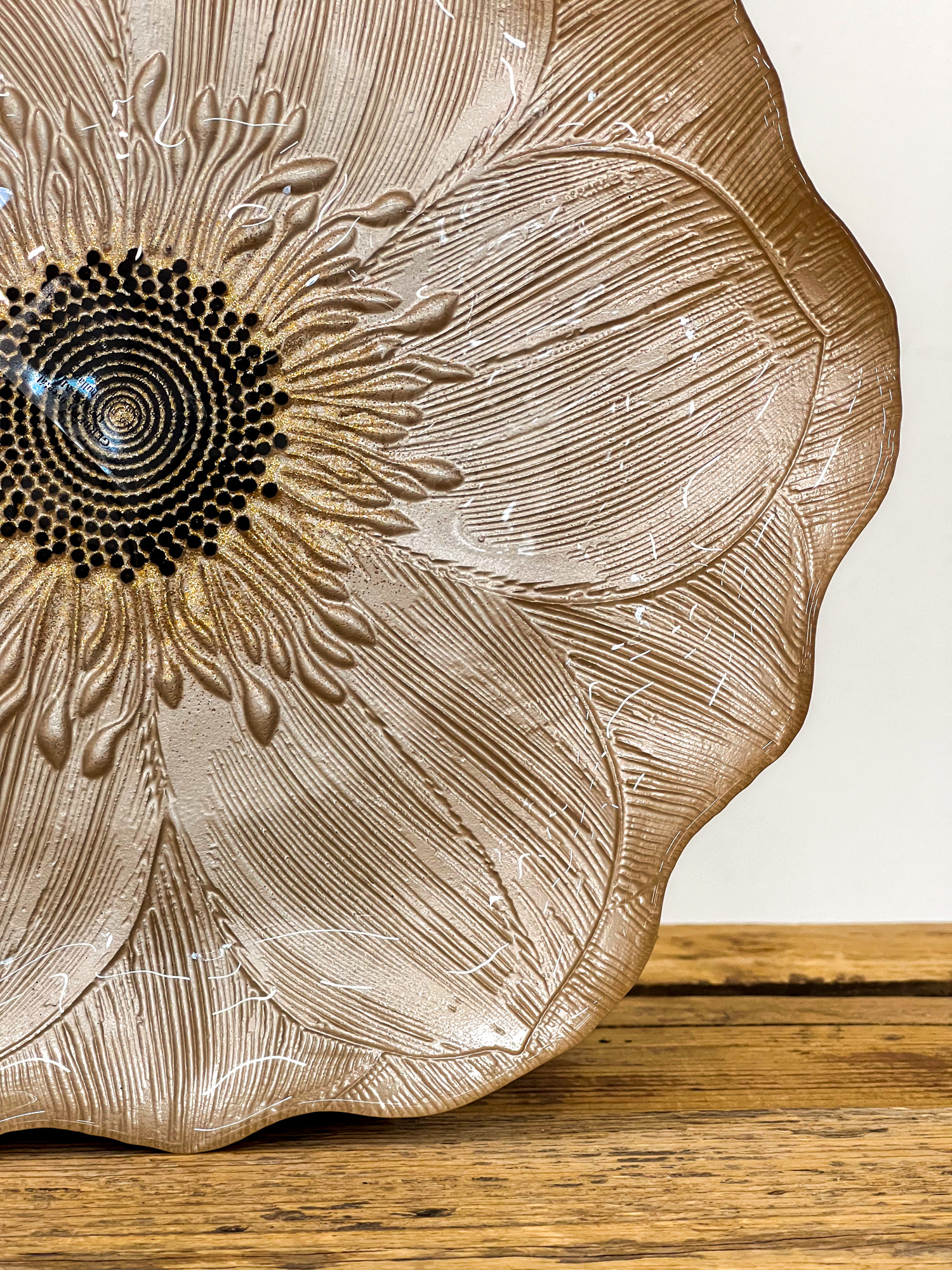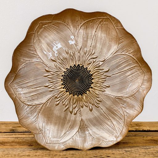 Varázsold különlegessé az ünnepi asztalt ezzel az elegáns üveg tányérral! A tányér felületét különleges virág mintázat díszíti, közepén bronz színű csillámmal van megszórva, amely luxus hatást kölcsönöz minden terítéknek.