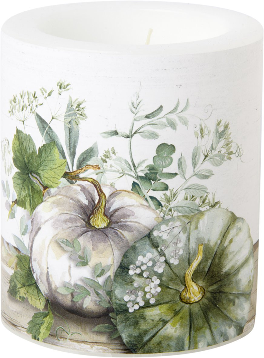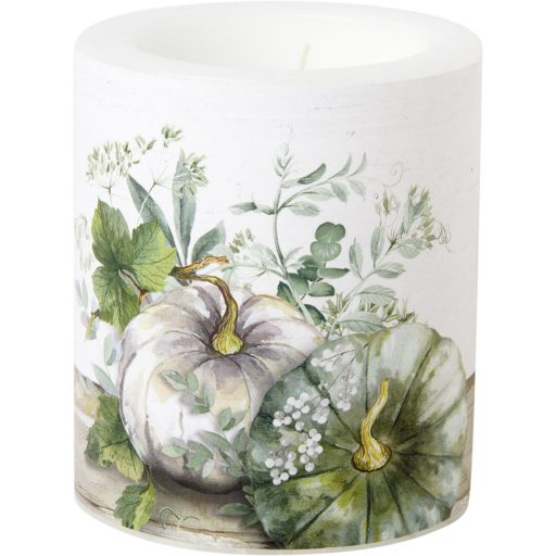 Green/white pumpkin tökös, átvilágítós gyertya 10,5 cm IHR