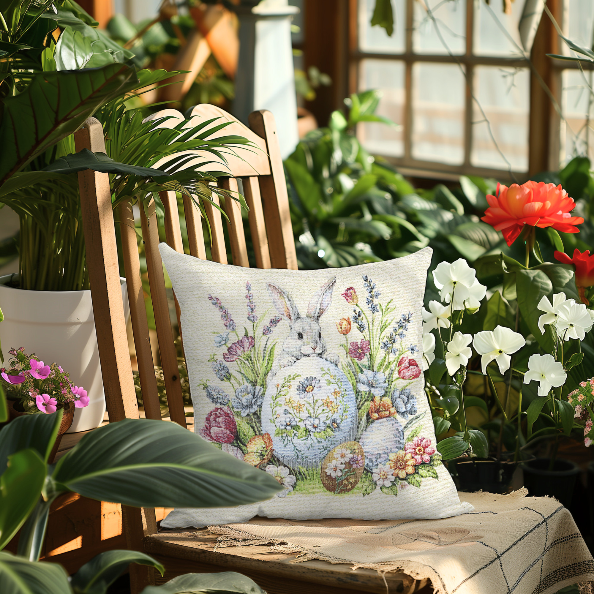 Vidám húsvéti díszpárna huzat, amelynek mindkét oldalán ugyanaz a minta található. Megfelelő kezelés mellett éveking megőrzi szépségét és minőségét. Lepd meg magad vagy szeretteidet egy prémium minőségű díszpárna huzattal!