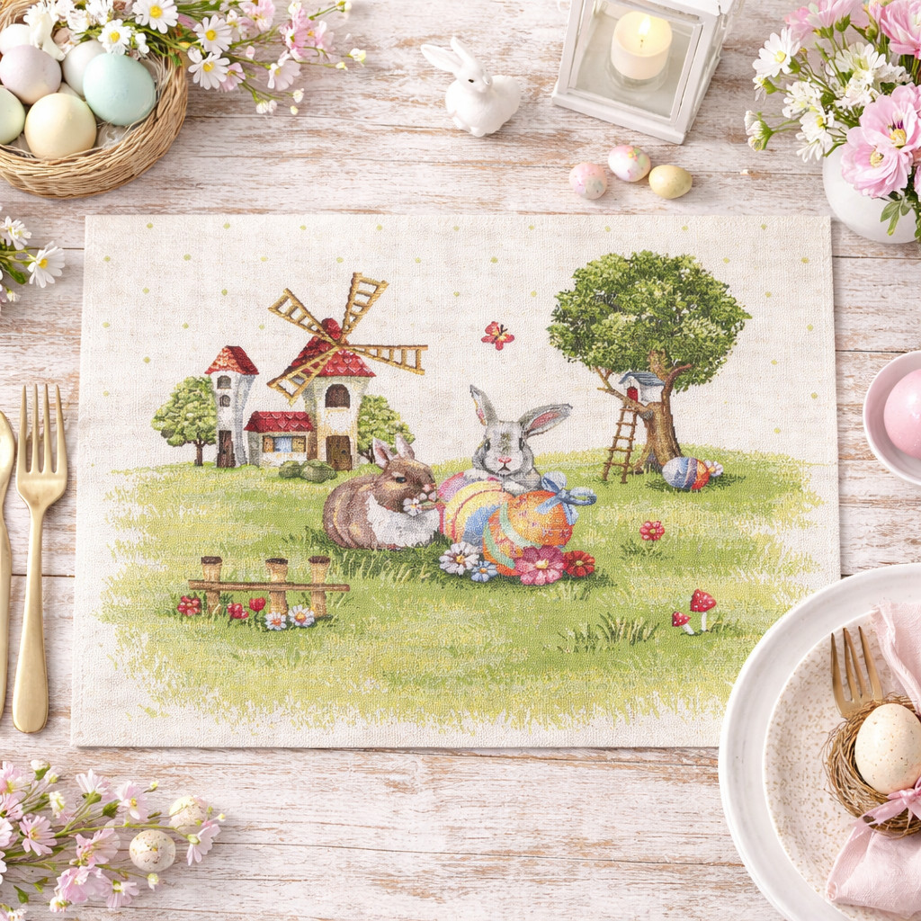 Húsvéti nyuszis, szélmalmos kollekciónk tányéralátéte minden lakás enteriőrjébe könnyen beleilleszkedik. Lepd meg magad vagy szeretteidet prémium minőségű tányéralátéttel, amely pompásan fog mutatni húsvétkor az asztalon!