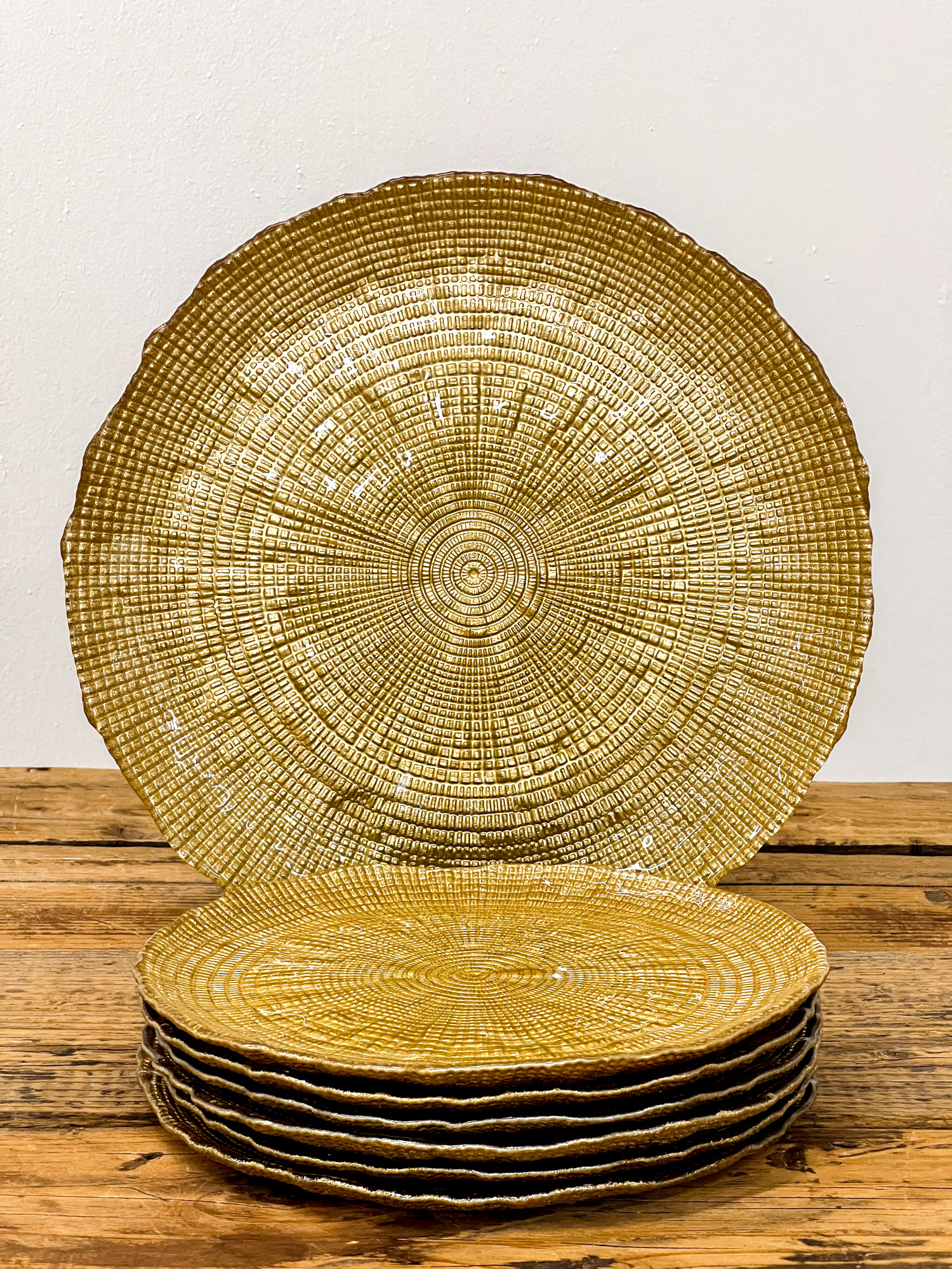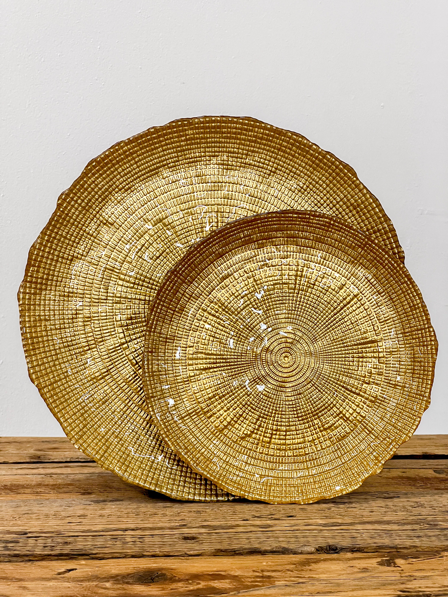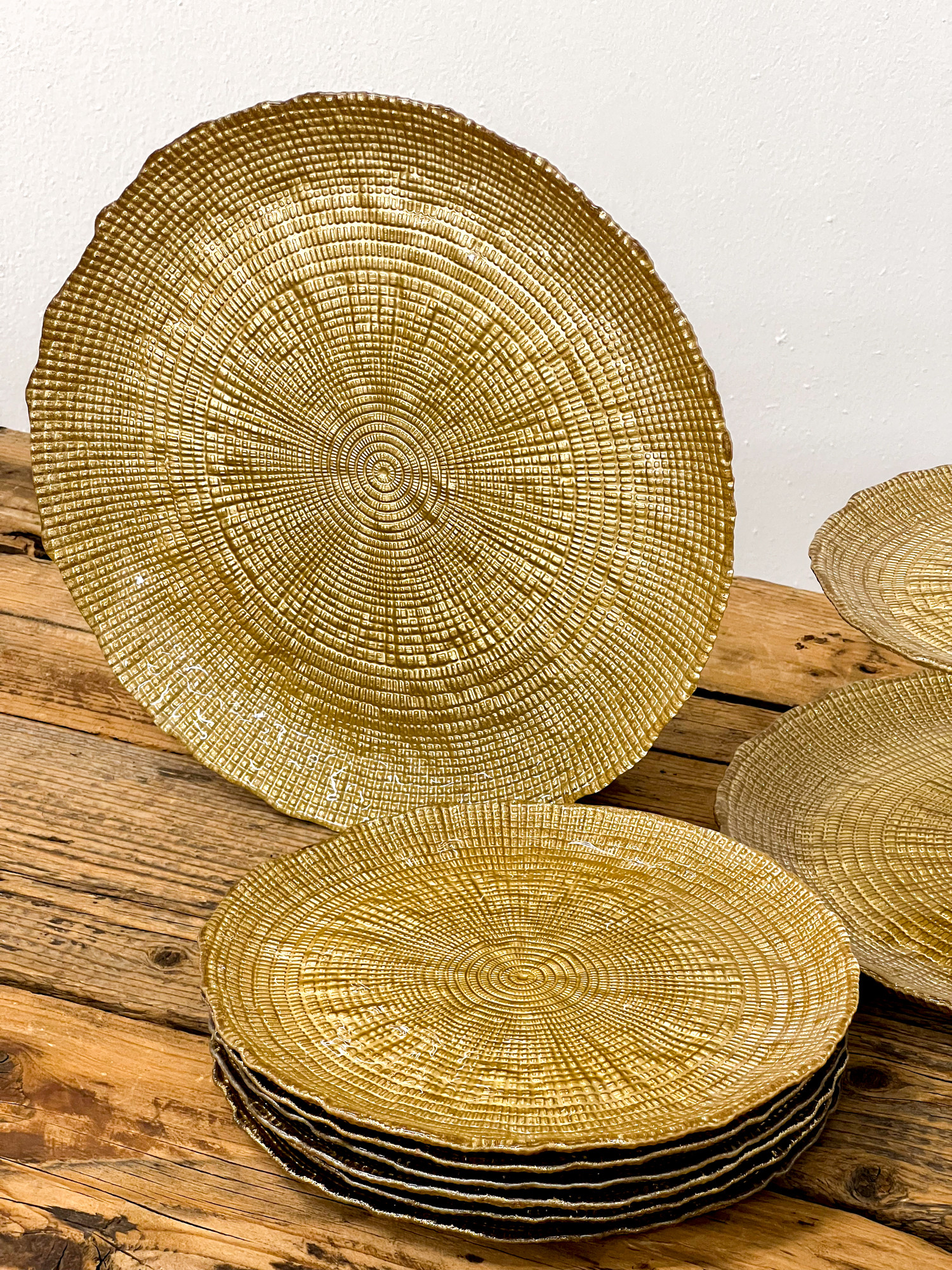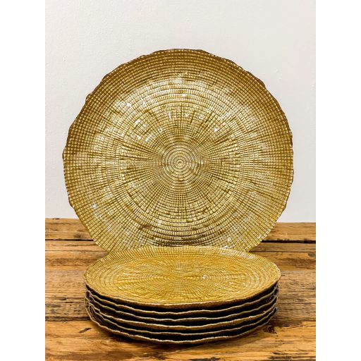 Varázsold különlegessé az ünnepi asztalt ezzel az elegáns üveg süteményes tányérkészlettel! A tányérok felületét finom faerezet mintázat díszíti, szélükön pedig arany színű csillám fut végig, amely luxus hatást kölcsönöz minden terítéknek.