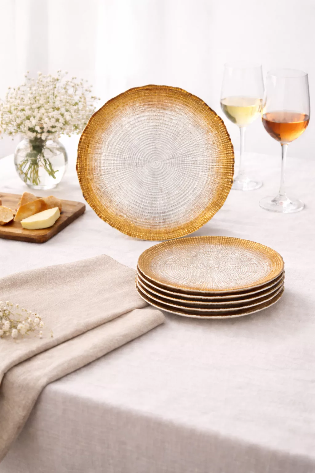 - 6 db desszerttányér (21 cm átmérő) – süteményekhez, előételekhez vagy vendégváró falatokhoz.