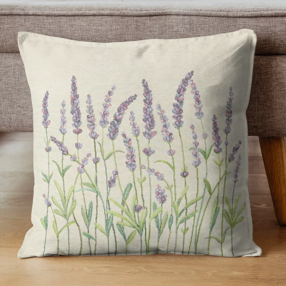 Díszpárna huzat dekoratív, levendulás mintával. Stílusos lakáskiegészítő, amely hosszú éveken át megőrzi színét és minőségét. Jól mutat a fotelekben, kanapékon és a hálószobában is. A termék a párnabelsőt nem tartalmazza. Keresd a többi levendula mintás termékünket és állíts össze egy kollekciót.