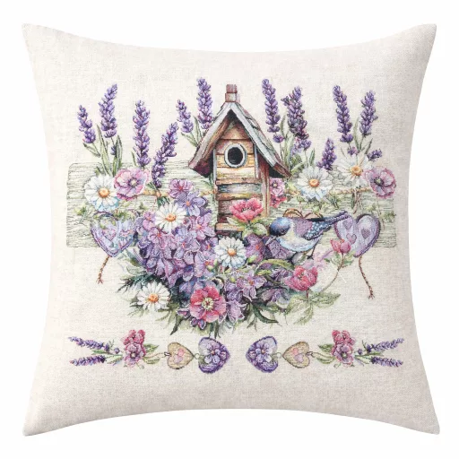 Levendulás, madárházas díszpárna huzat