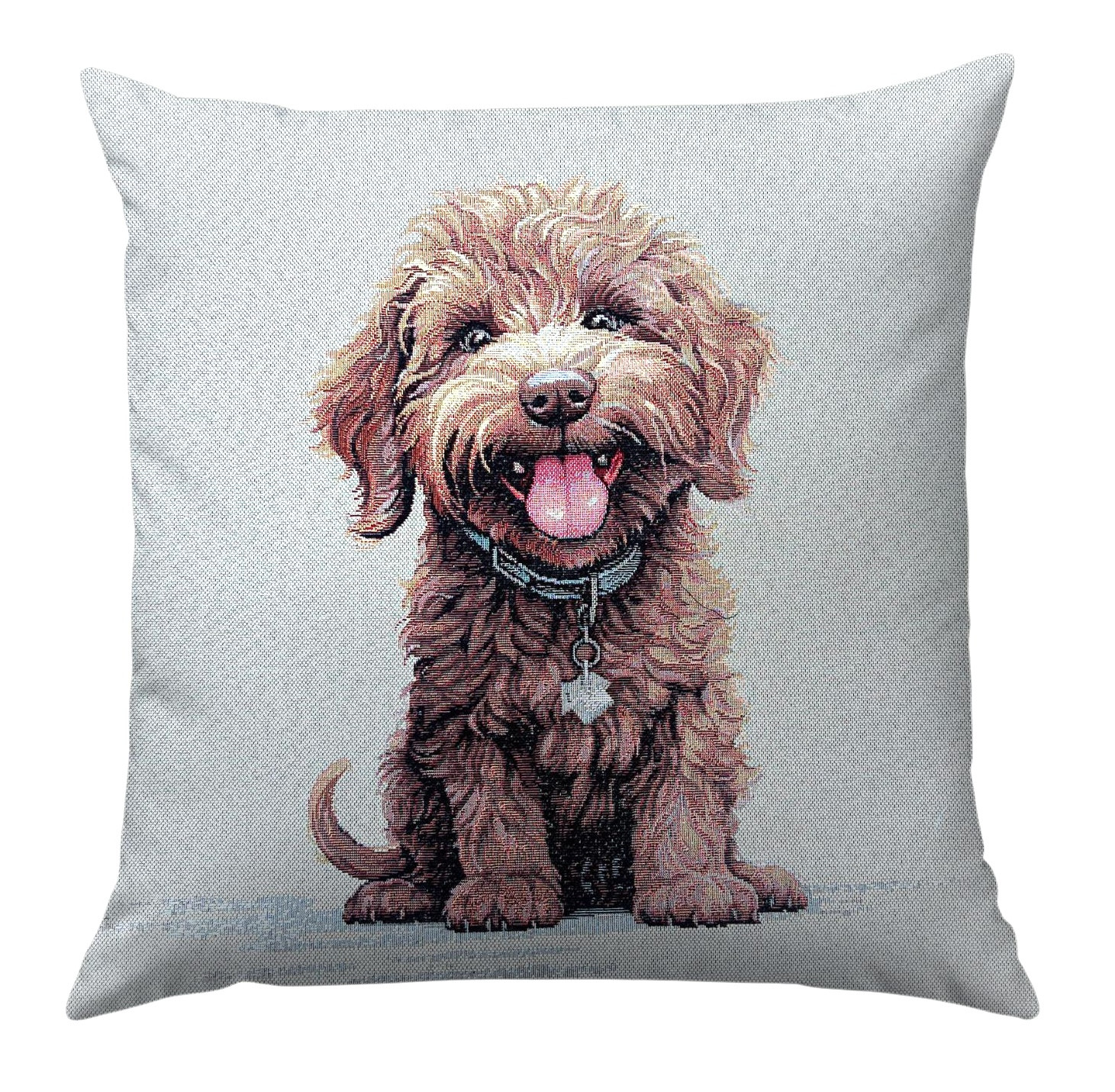 Tedd otthonod különlegessé ezzel a bájos, kutyás gépi gobelin díszpárnahuzattal, amely Spanyolországban készült, prémium minőségű gépi szövéssel. A huzaton egy barna mini poodle kutya látható, kétoldalas mintával.