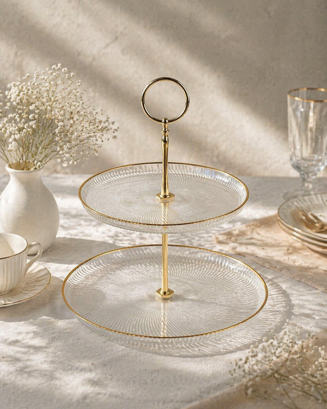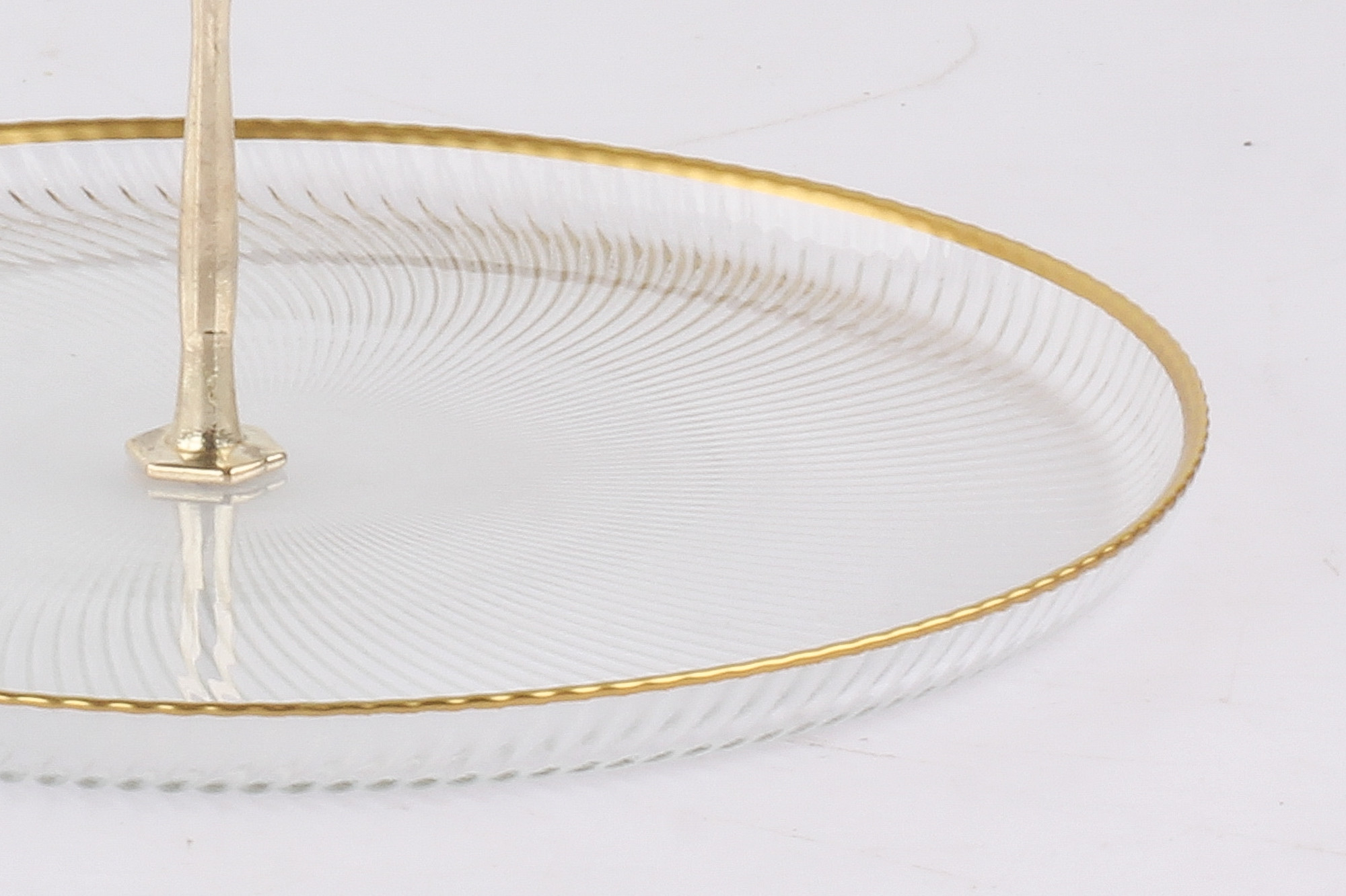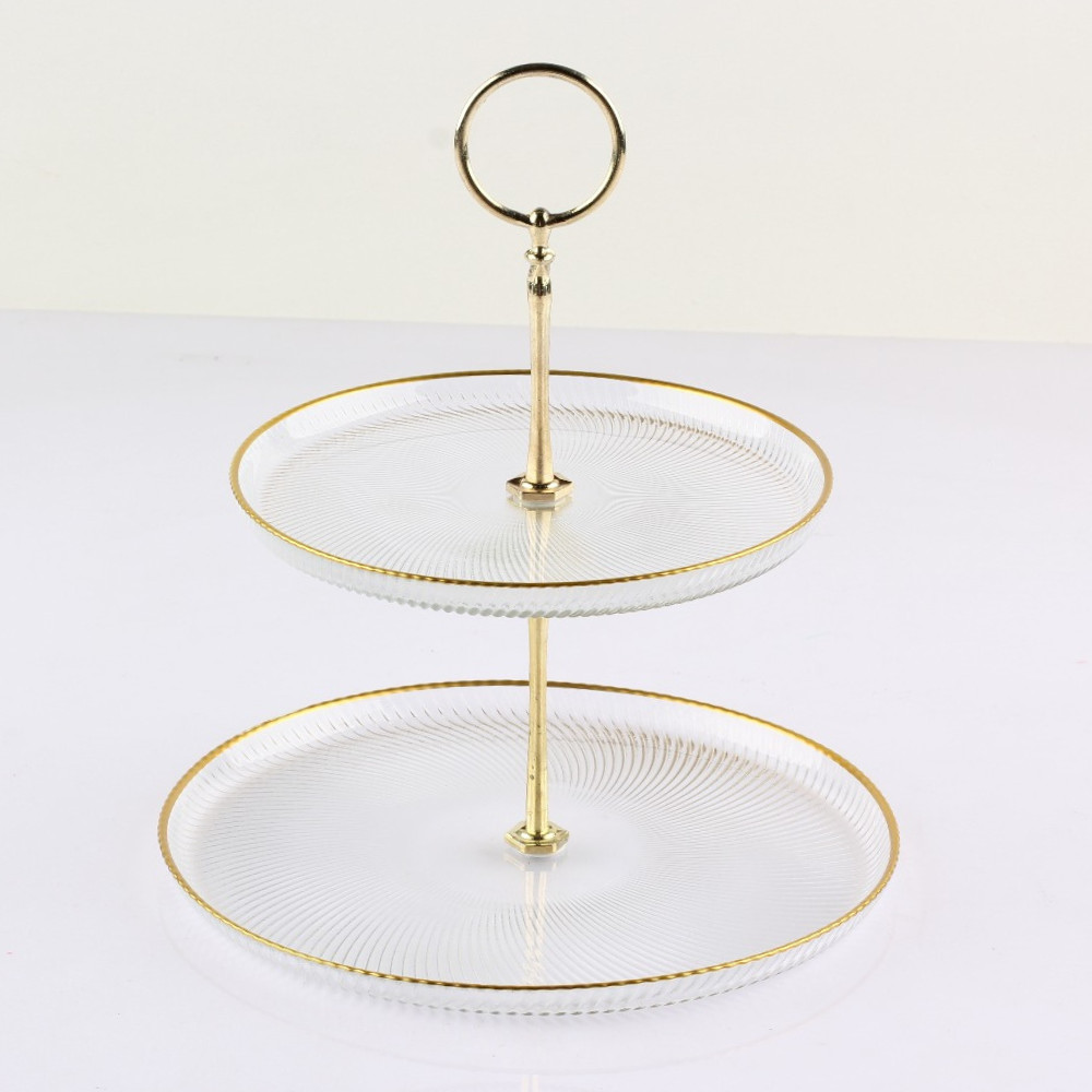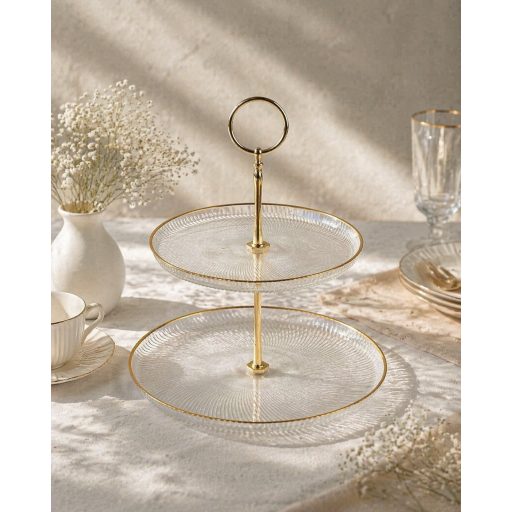 Tedd különlegessé az asztalterítést ezzel a stílusos, kis kétszintes emeletes kínálóval! Felületét egyedi csíkozott mintázat díszíti, peremét arany szín díszíti, amely elegáns és luxus hatást kölcsönöz.