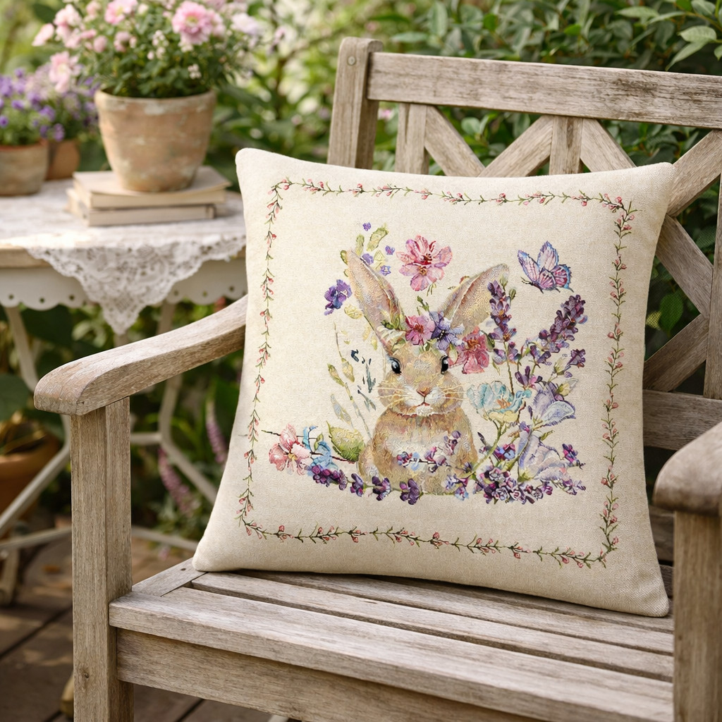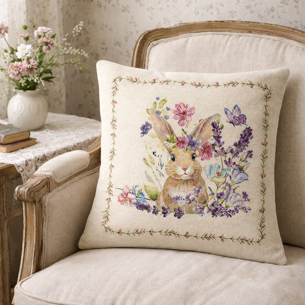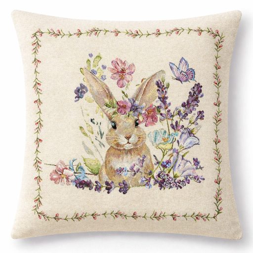 Gépi szövésű spanyol gobelin párnahuzat – nyuszi mintával