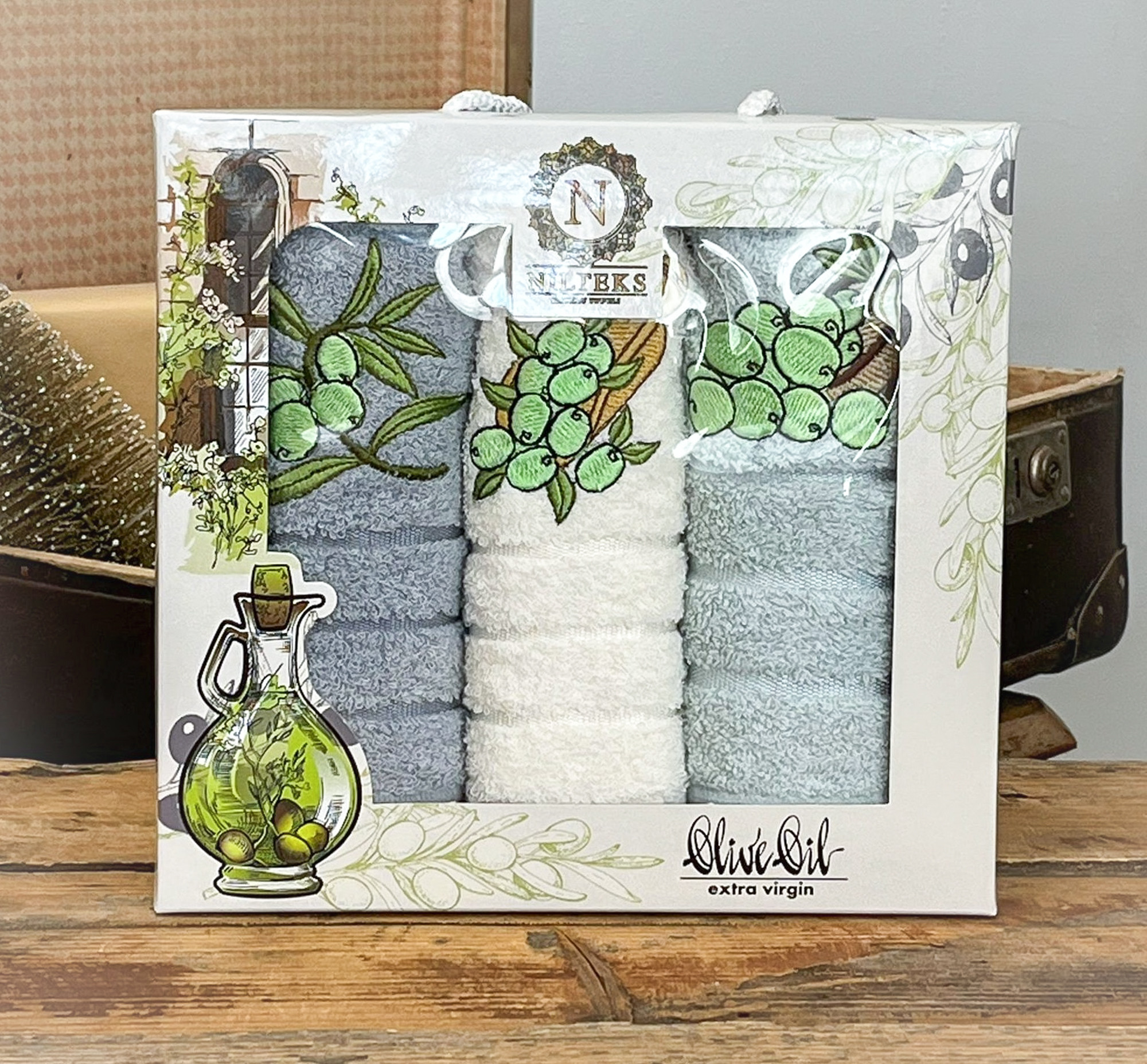 Olivás kéztörlő szett díszdobozban, 3 db-os