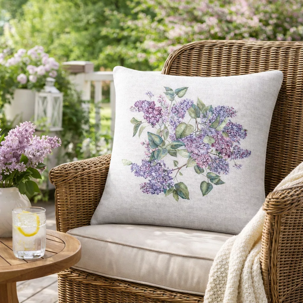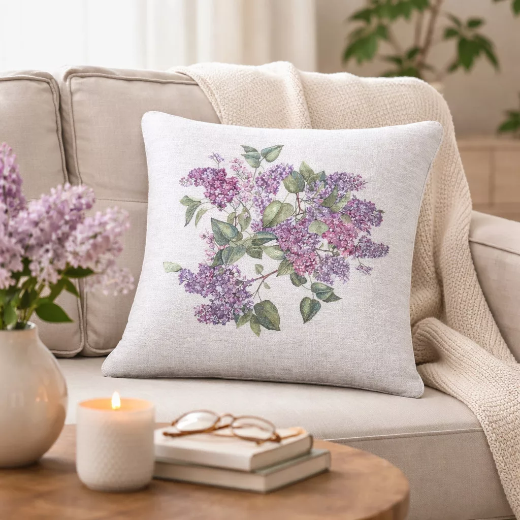 Ez a különleges spanyol gobelin párnahuzat a klasszikus gobelin hagyományait ötvözi a modern, precíz gépi szövési technológiával. A részletgazdag minta virágzó orgonaágakat ábrázol természetes zöld levelekkel, amelyek friss, tavaszias és harmonikus hangulatot visznek az enteriőrbe.