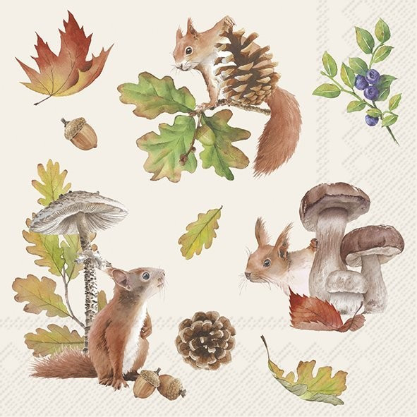 Őszi mókusok szalvéta, 3 rétegű, 20 db/csomag, IHR