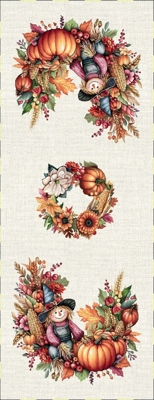 Őszi tökös, madárijesztős asztali futó, 37x100 cm