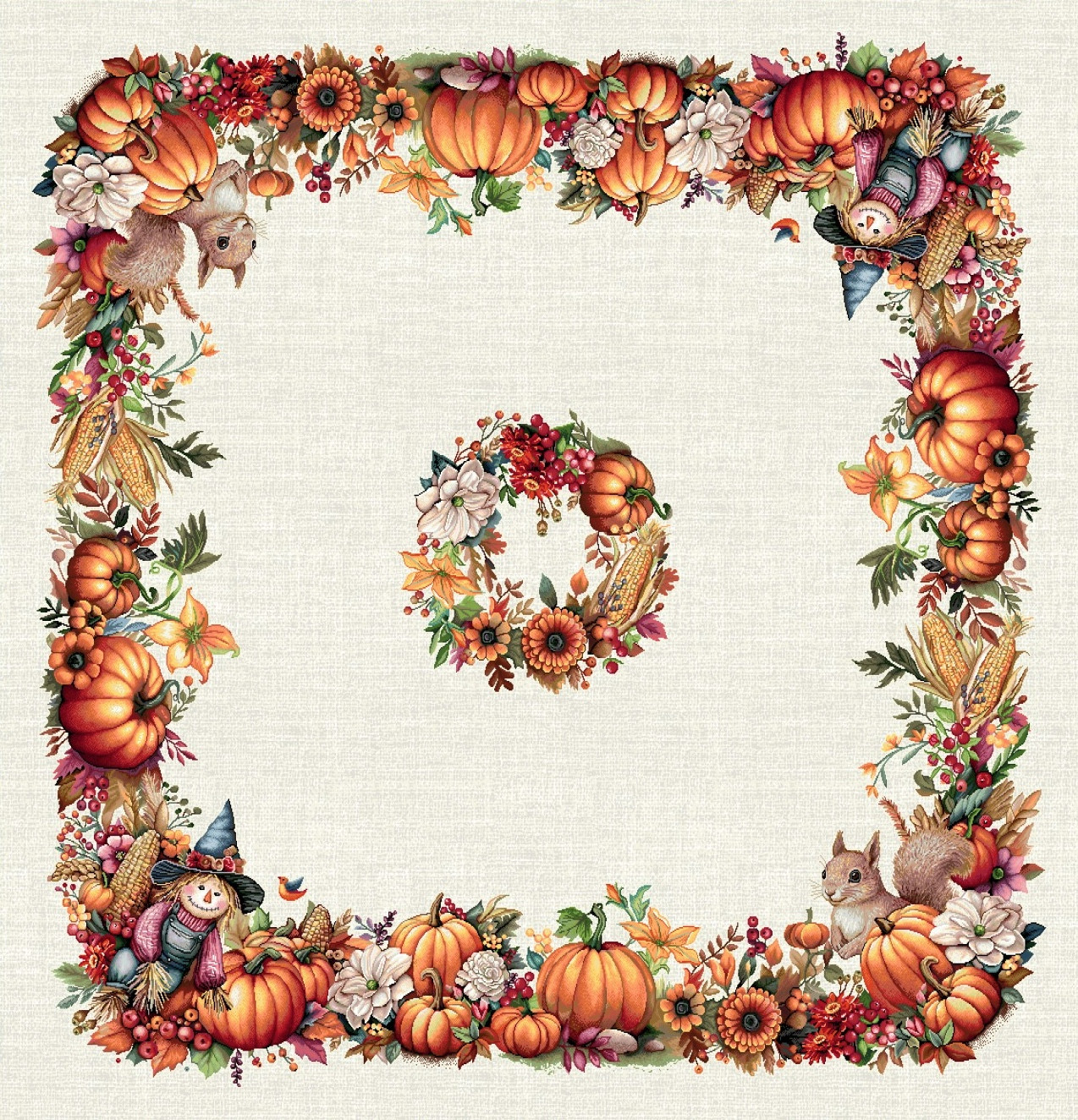 Őszi tökös, madárijesztős asztalterítő, 96x100 cm