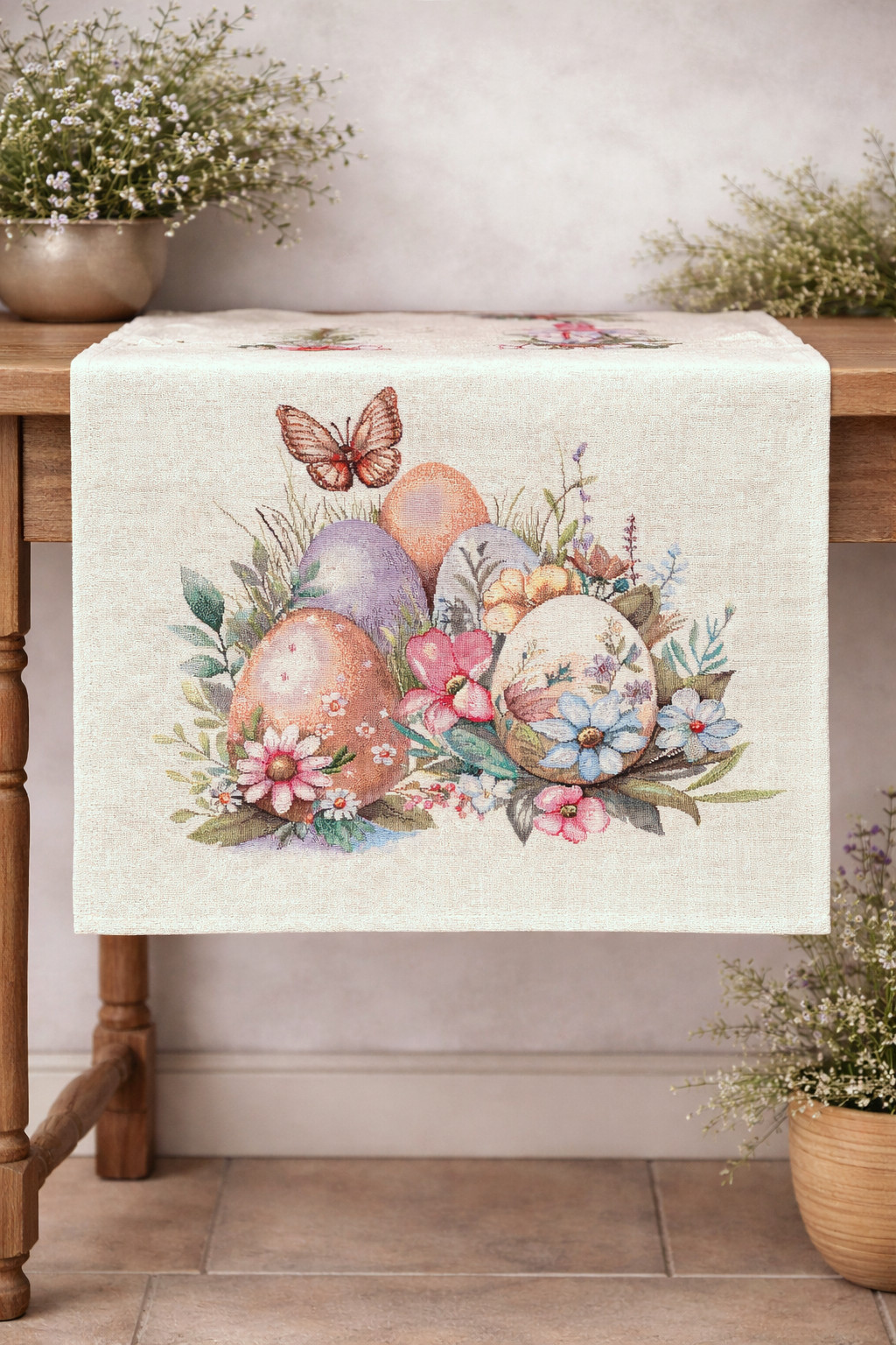 Gépi szövésű spanyol gobelin asztali futó és asztalterítő – húsvéti, tavaszi design