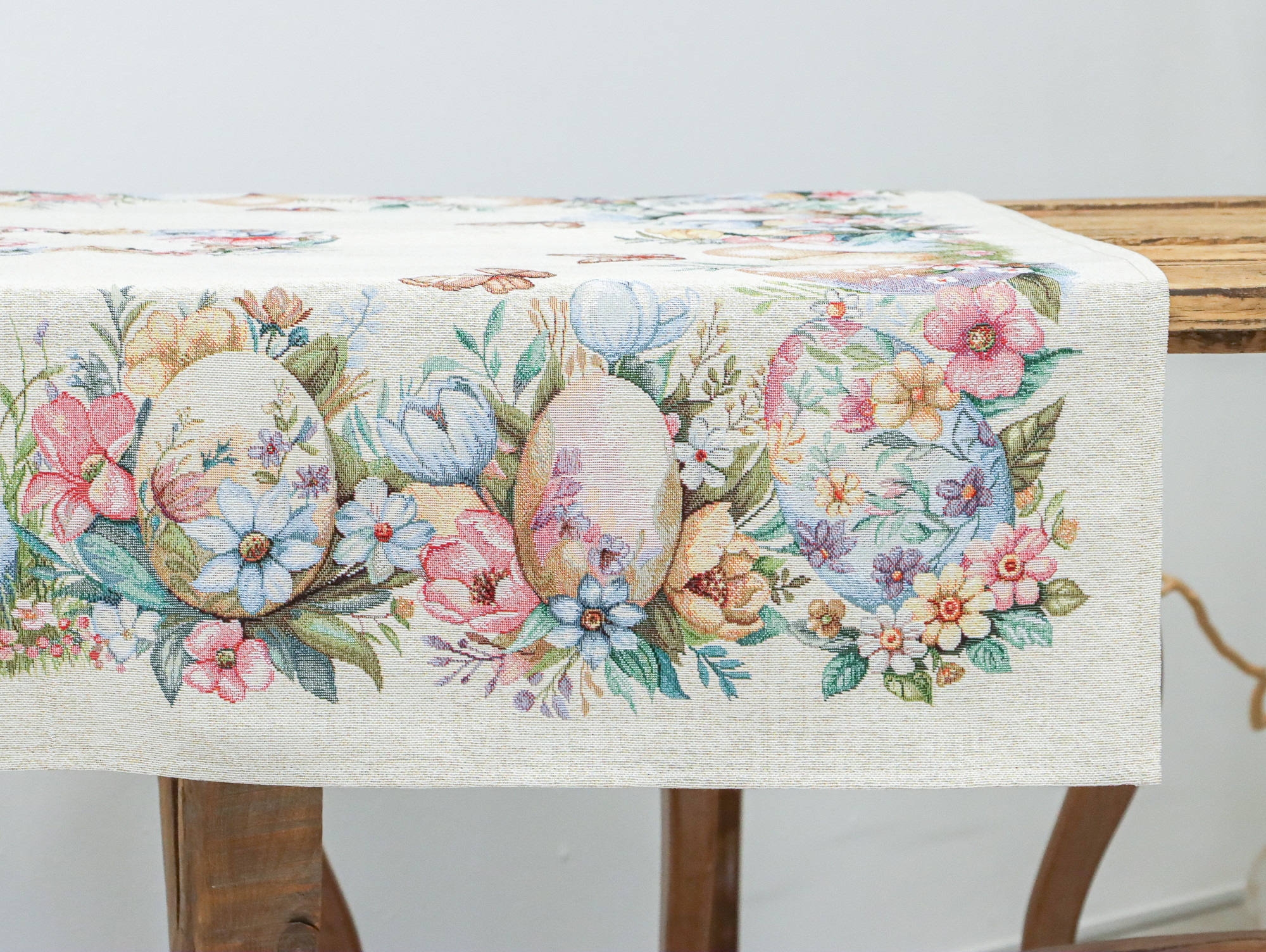 Gépi szövésű spanyol gobelin asztali futó és asztalterítő – húsvéti, tavaszi design