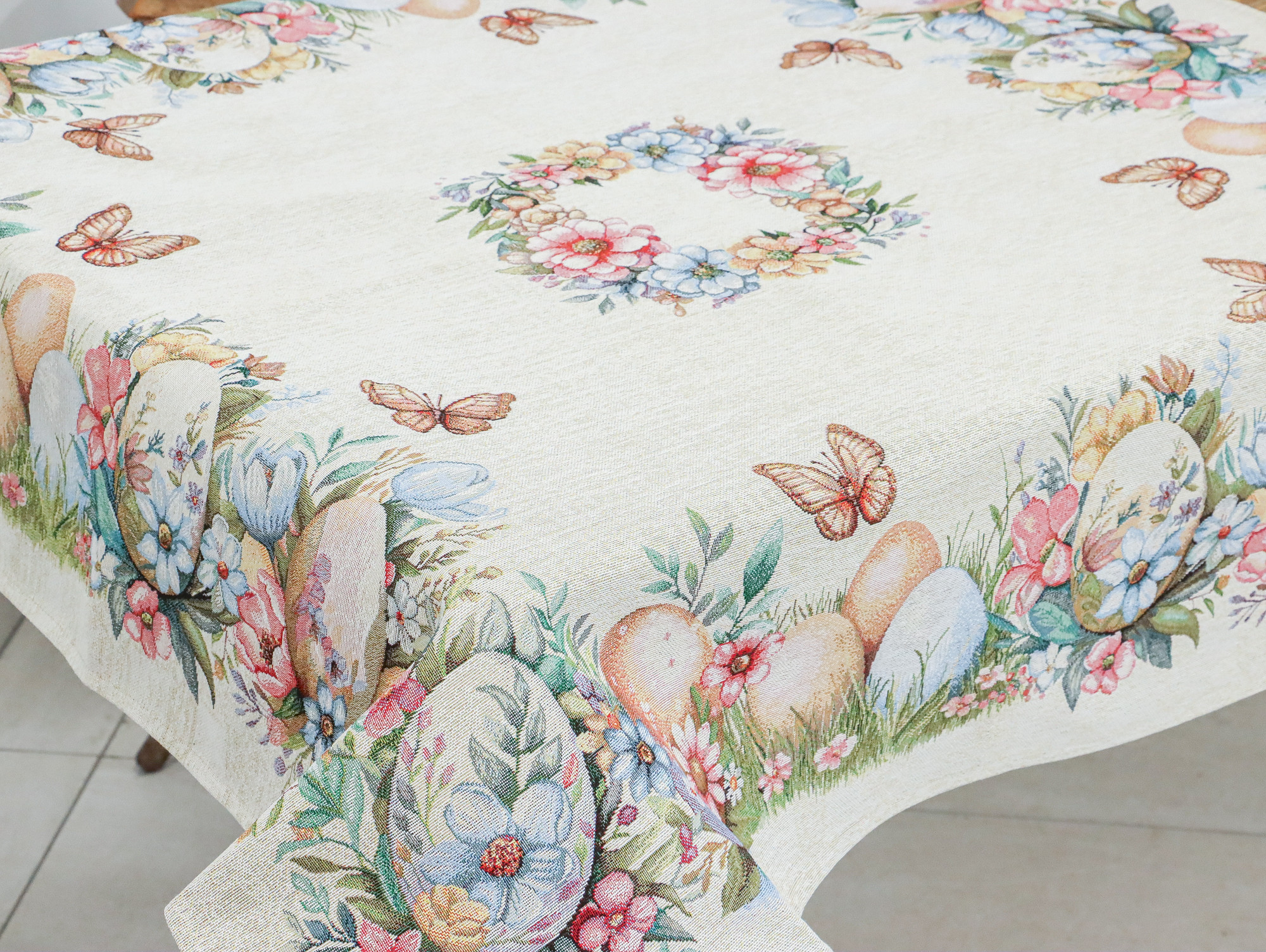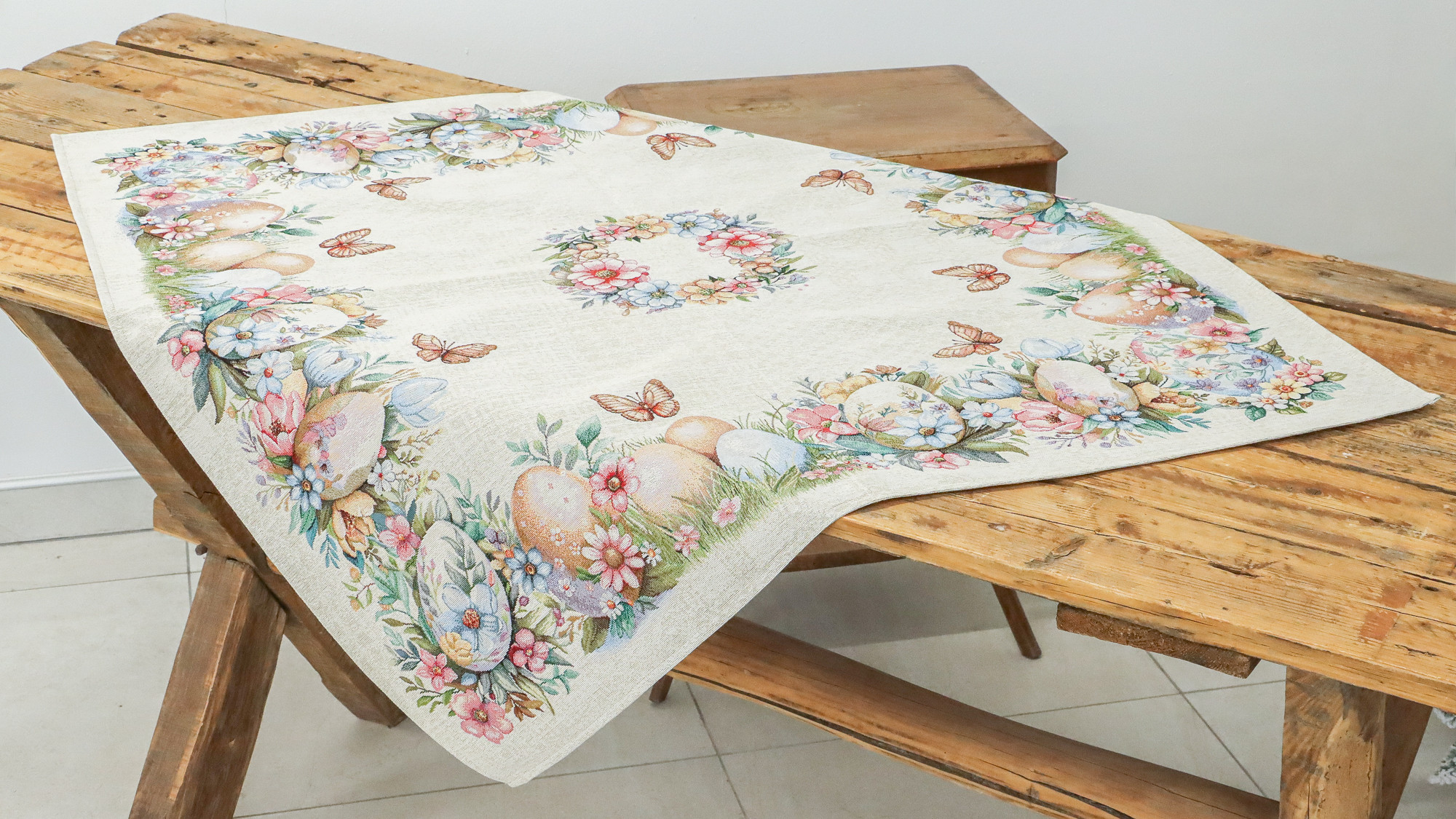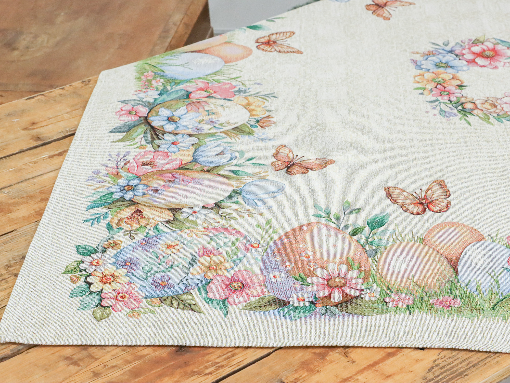Gépi szövésű spanyol gobelin asztali futó és asztalterítő – húsvéti, tavaszi design