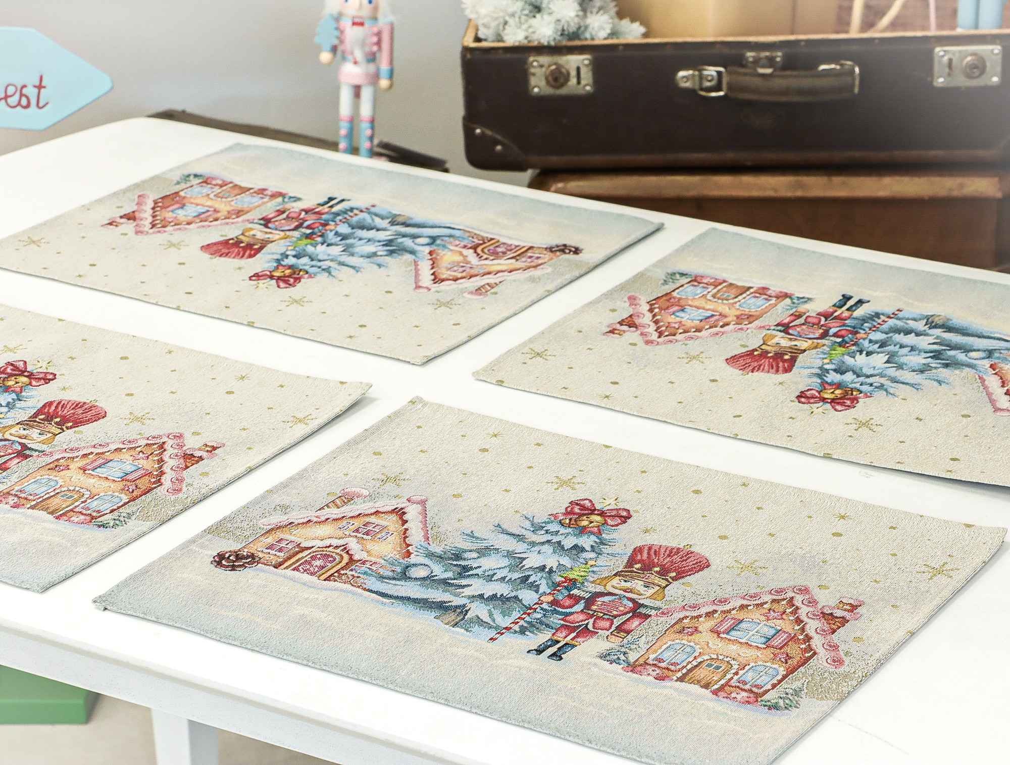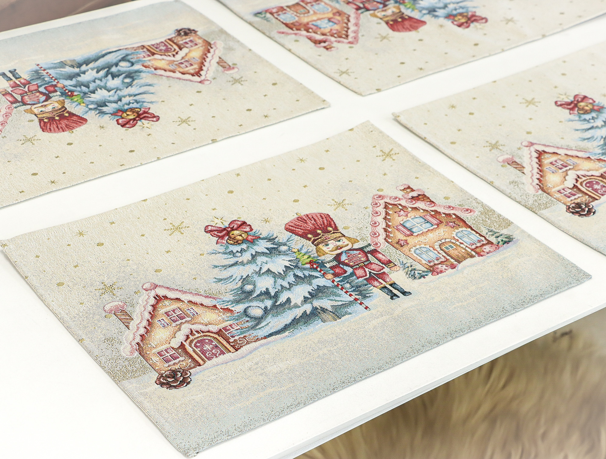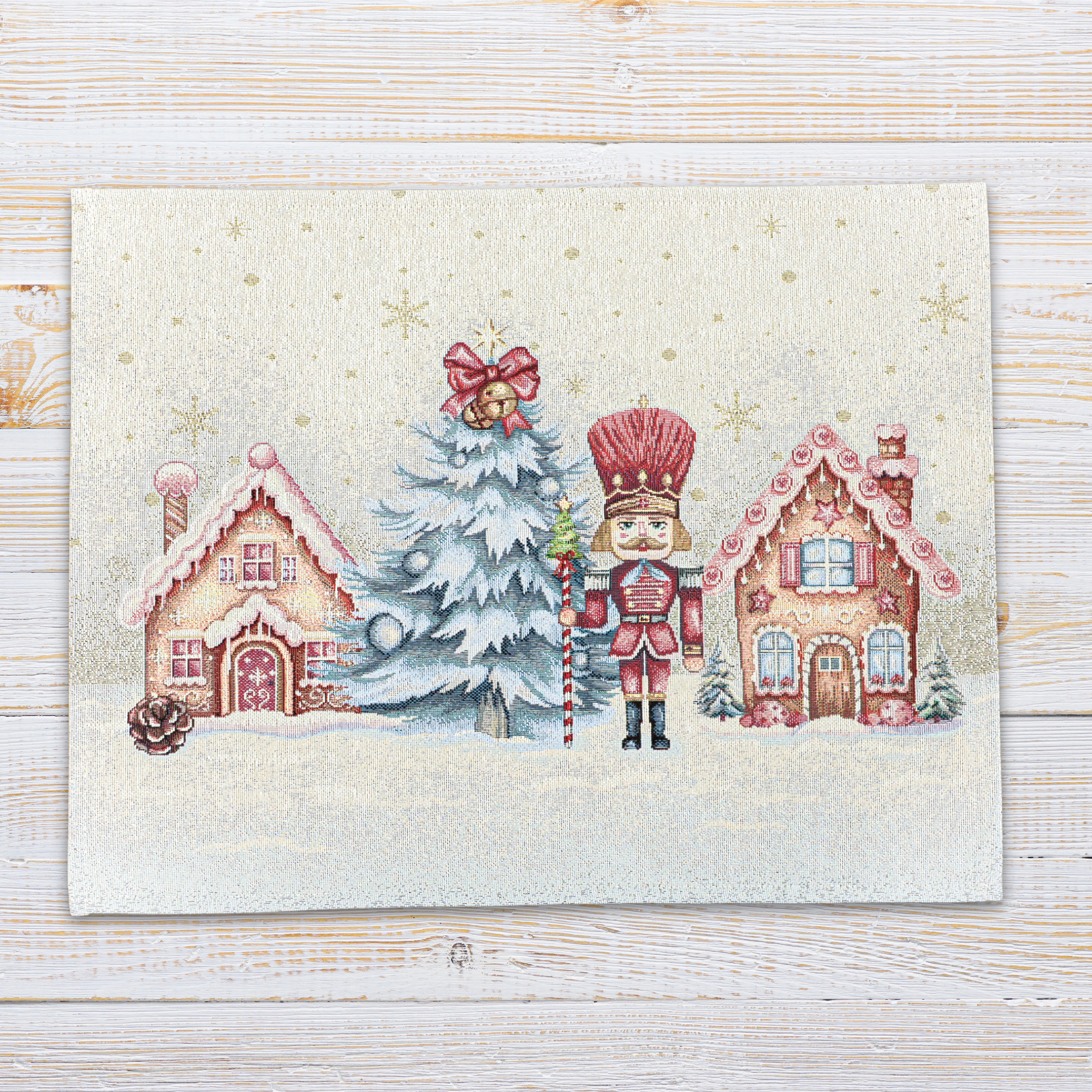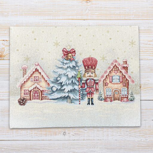 Varázsold ünnepivé az asztalterítést ezzel a diótörős tányéralátéttel! Az alátéten pink ruhába öltöztetett diótörők sorakoznak, feldíszített karácsonyfával és ajándékokkal. A prémium minőségű, gépi szövésű spanyol gobelin tartós és elegáns, így mindennapi használatra és ünnepi alkalmakra is tökéletes.