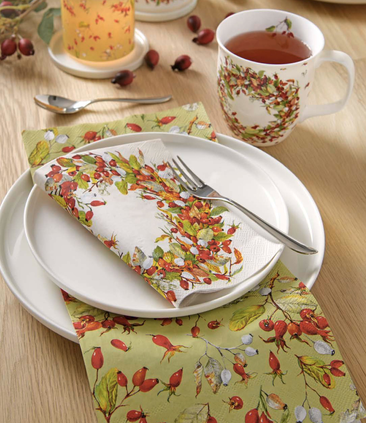 Rose hip csipkebogyós, őszi szalvéta, 3 rétegű, 20 db/csomag, IHR