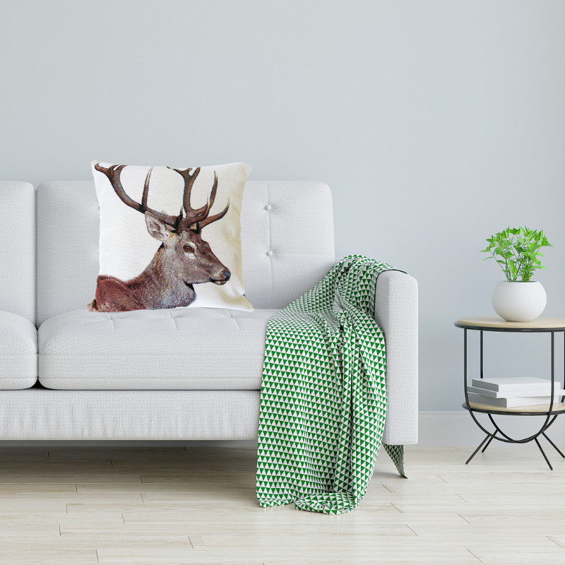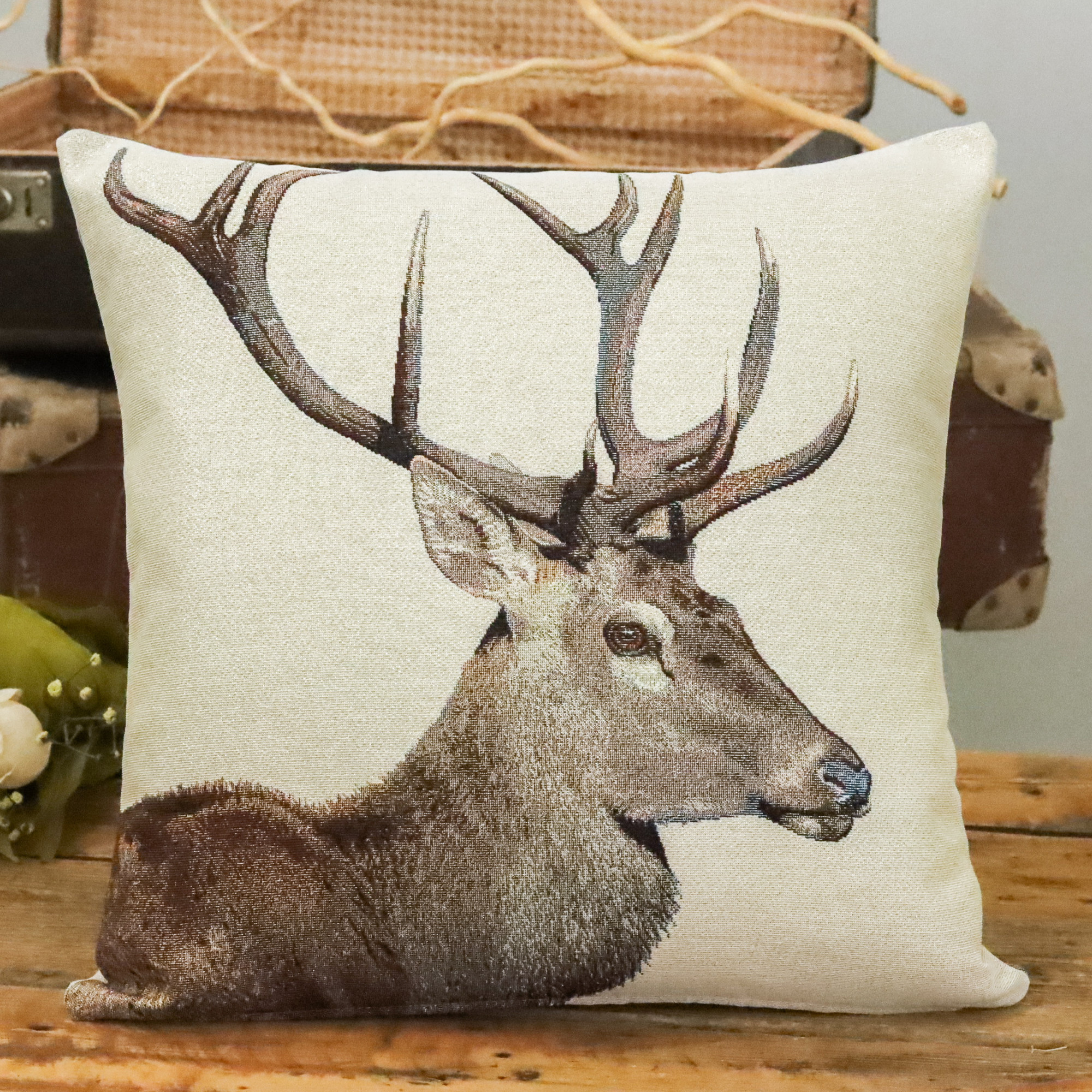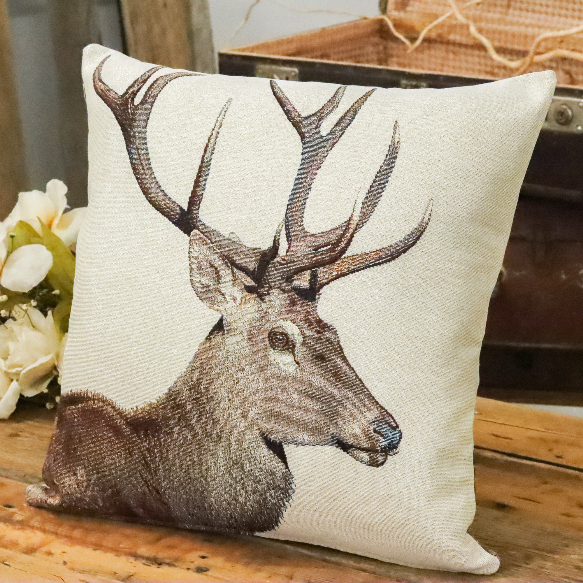 Szarvasos gépi szövésű gobelin díszpárna huzat kétoldalas mintával, cipzáros záródással.