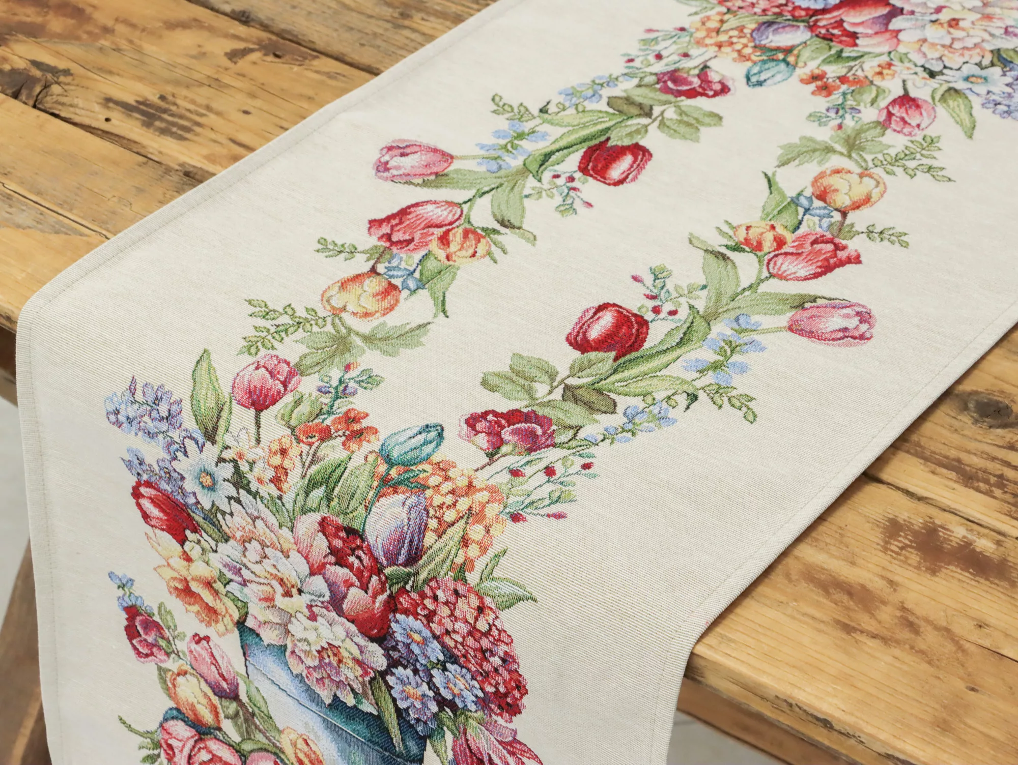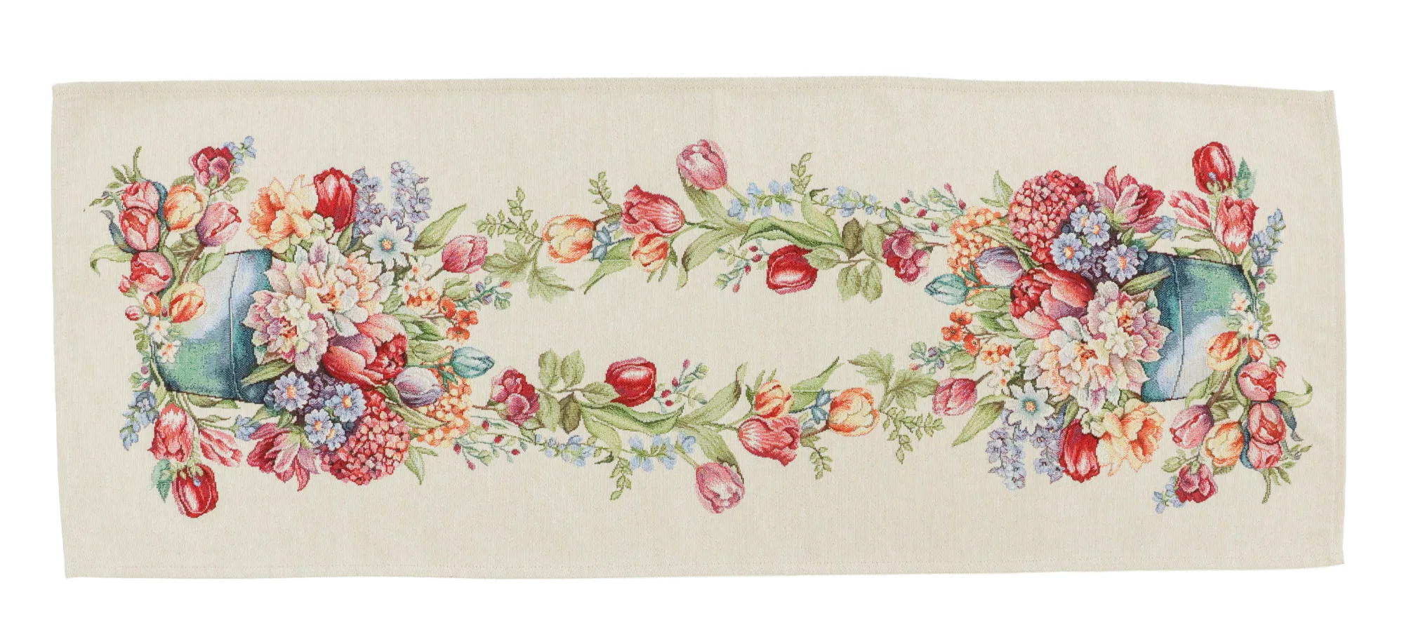 Varázsold az étkezőasztalt egy romantikus, virágos kertté ezzel a tulipános spanyol gépi szövésű gobelin asztali futóval! A prémium minőségű futó gazdag tulipán- és virágmintákkal dekorálja az asztalt.